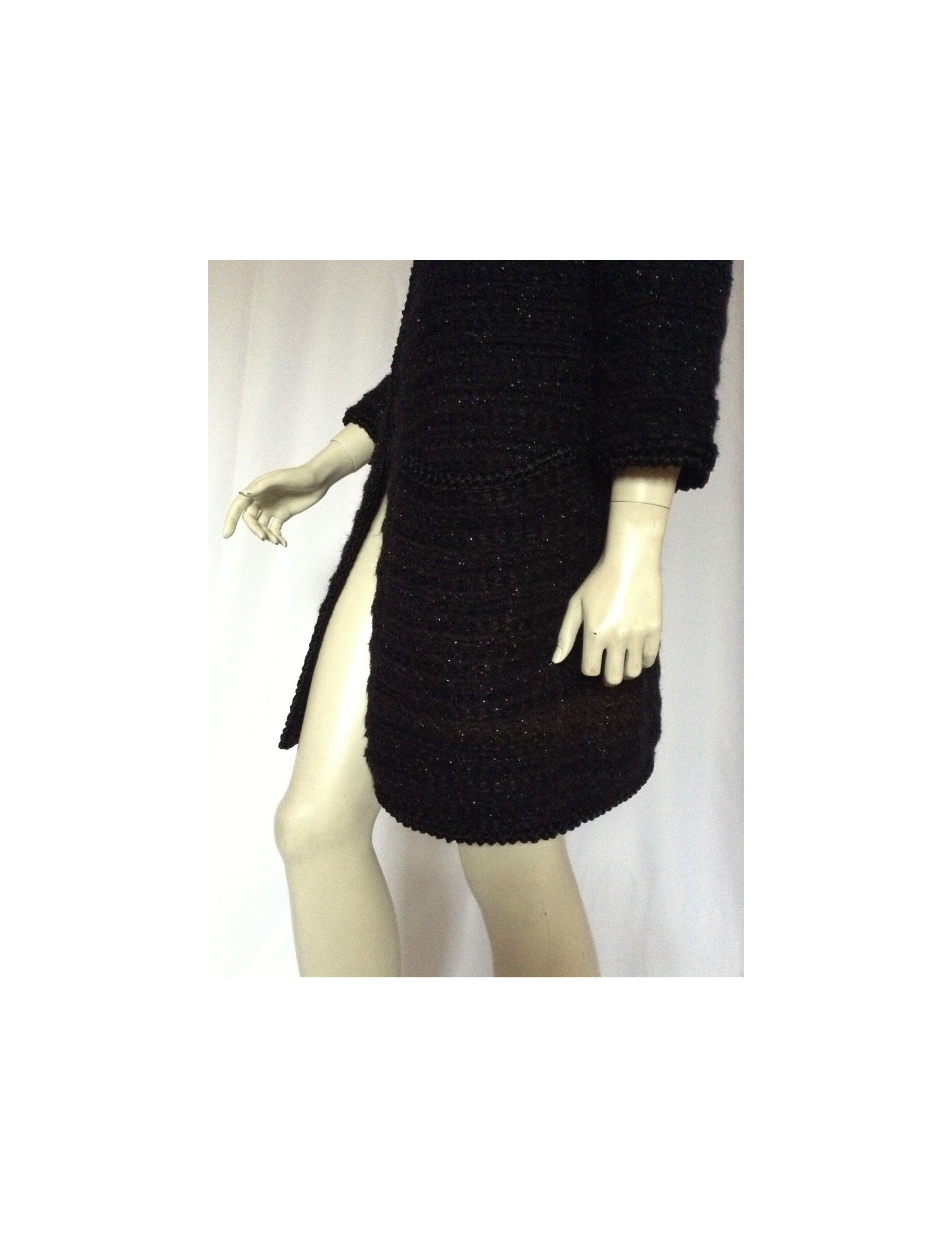 So Chic! veste longue Giambattista Valli, manches longues, légèrement ajustée, en mohair incrusté de fils de soie pailletéE. Les finitions sur la bordure de fermeture et les poignets sont également en soie 100%. C'est une taille 44IT (M). Sa composition est la suivante: 40% Viscose, 30% Polyamide et 30% Mohair.Ce magnifique gilet peut être porté la journée comme le soir. Collection: Automne/Hiver