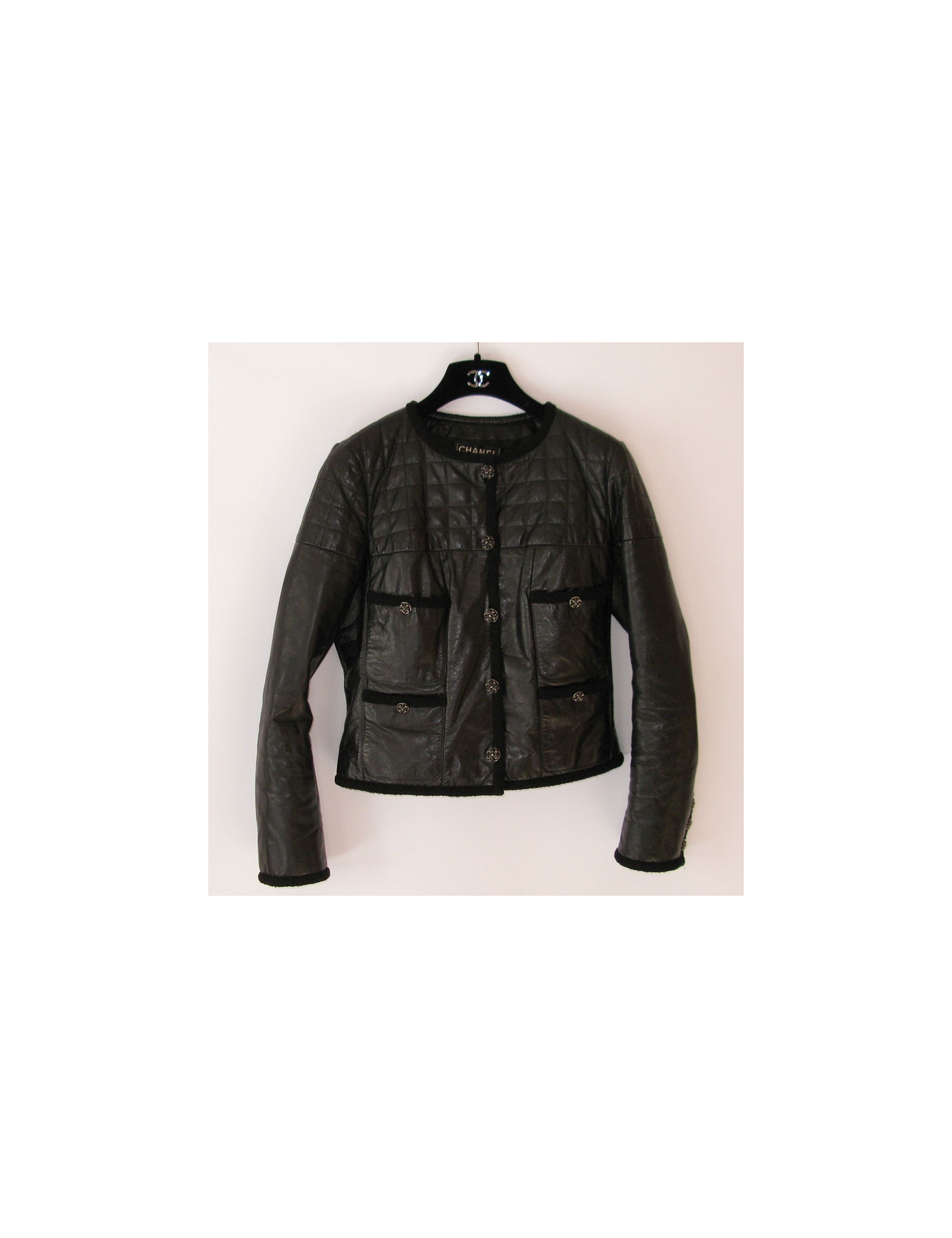 Veste Motard CHANEL cuir noir T40