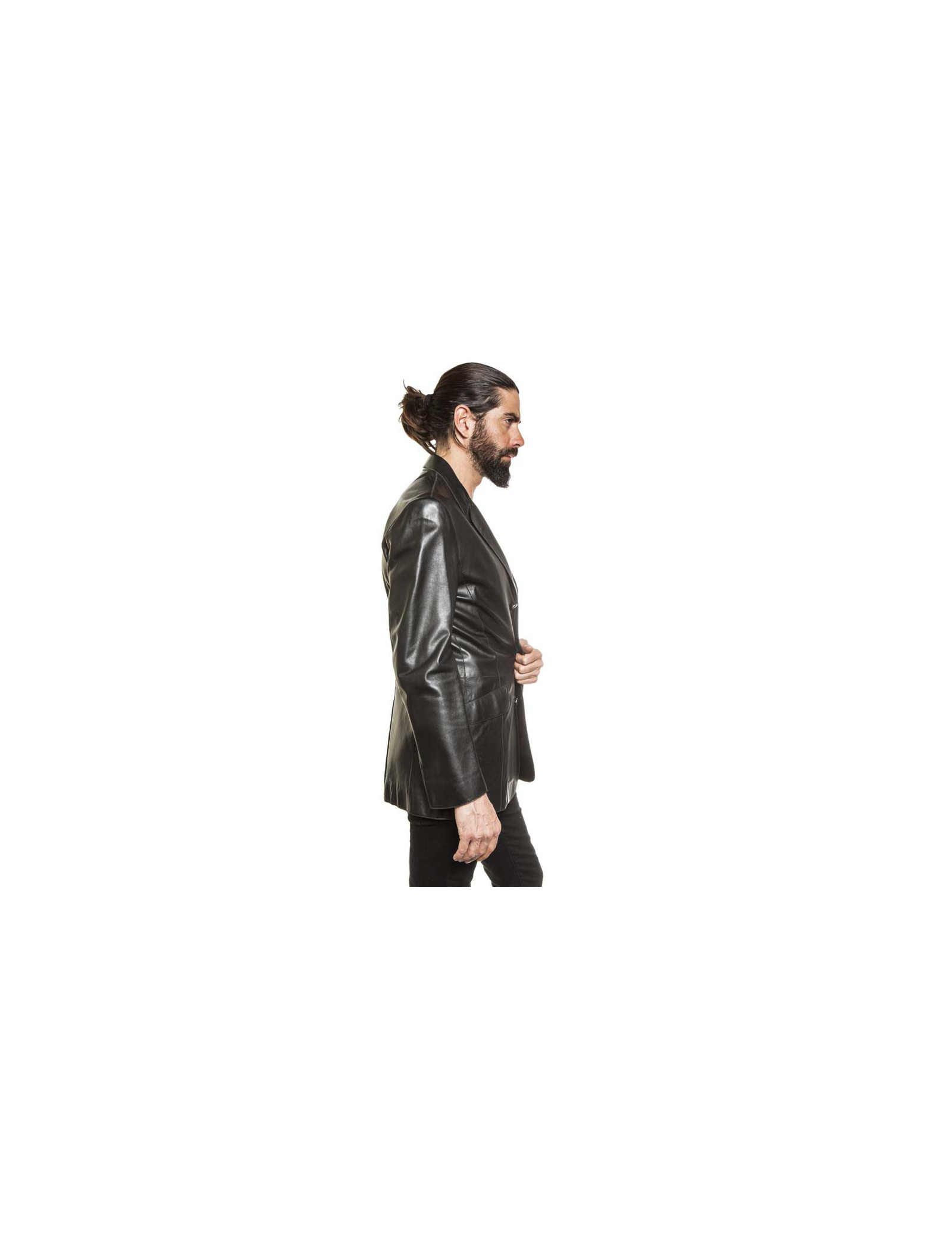 Vintage. Veste/blazer Taille 50 Thierry Mugler homme, en cuir d'agneau 100% souple lisse noir