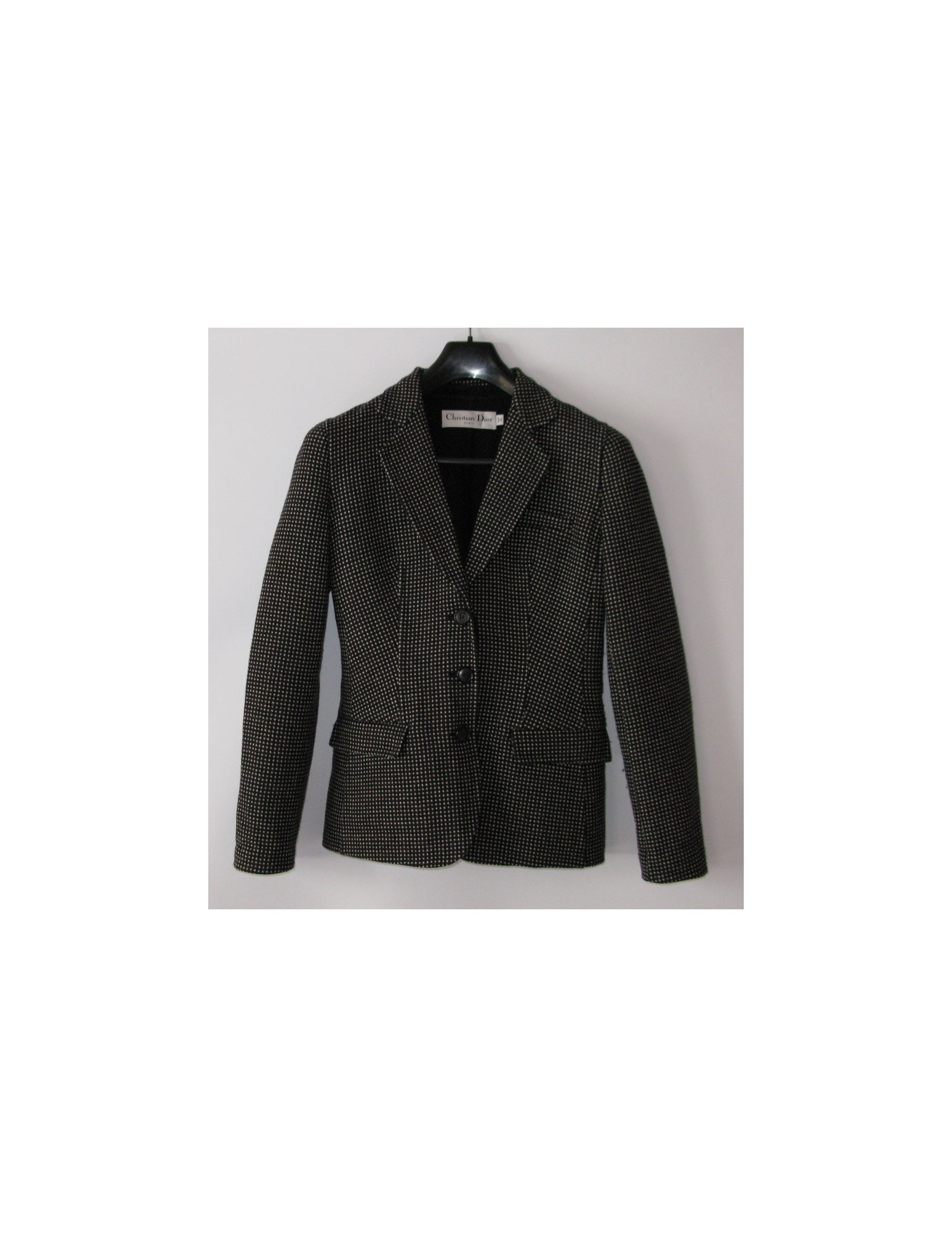 Veste Christian Dior "very trendy" de couleur anthracite avec de tout petit point blanc, courte, cintrée, manches longues.