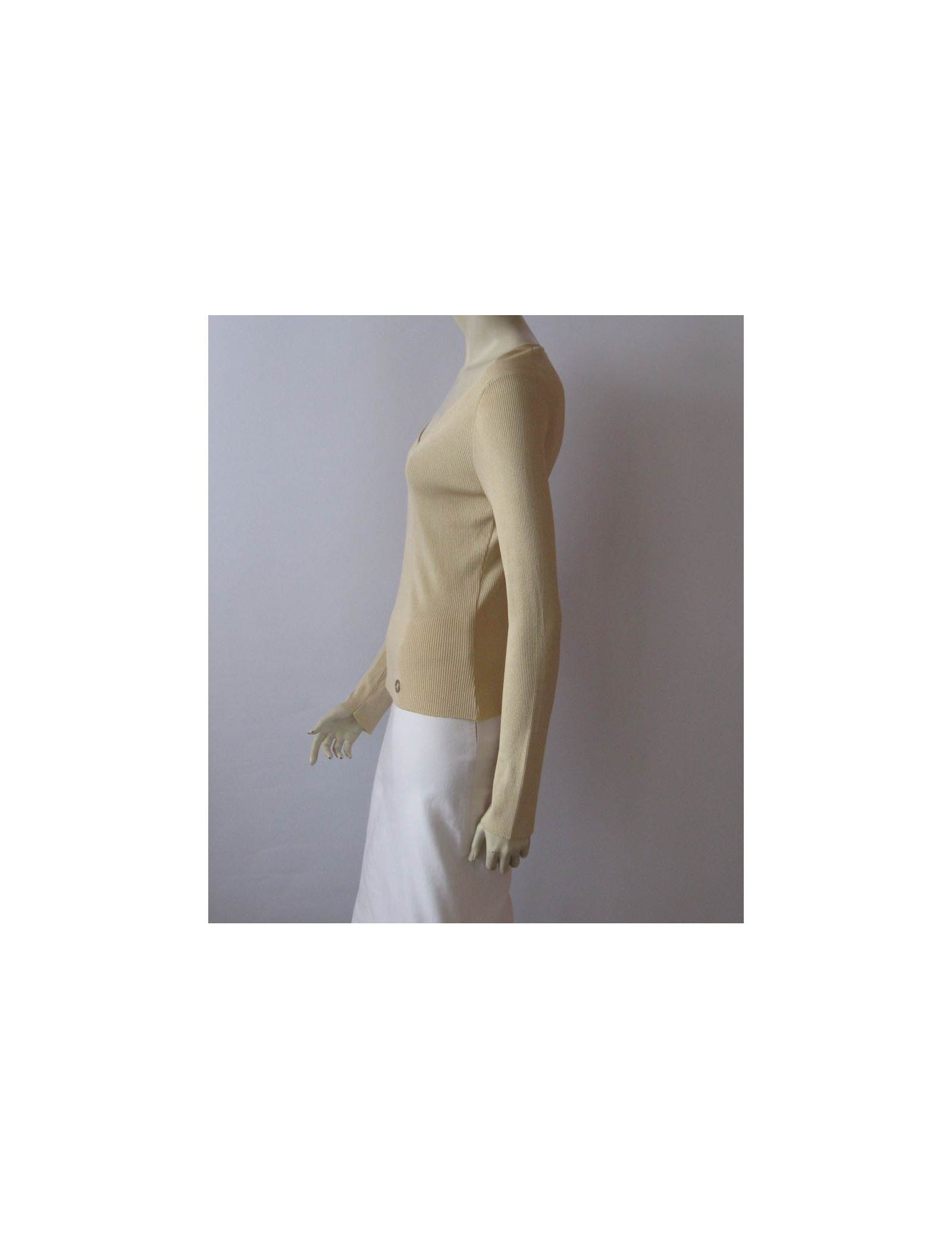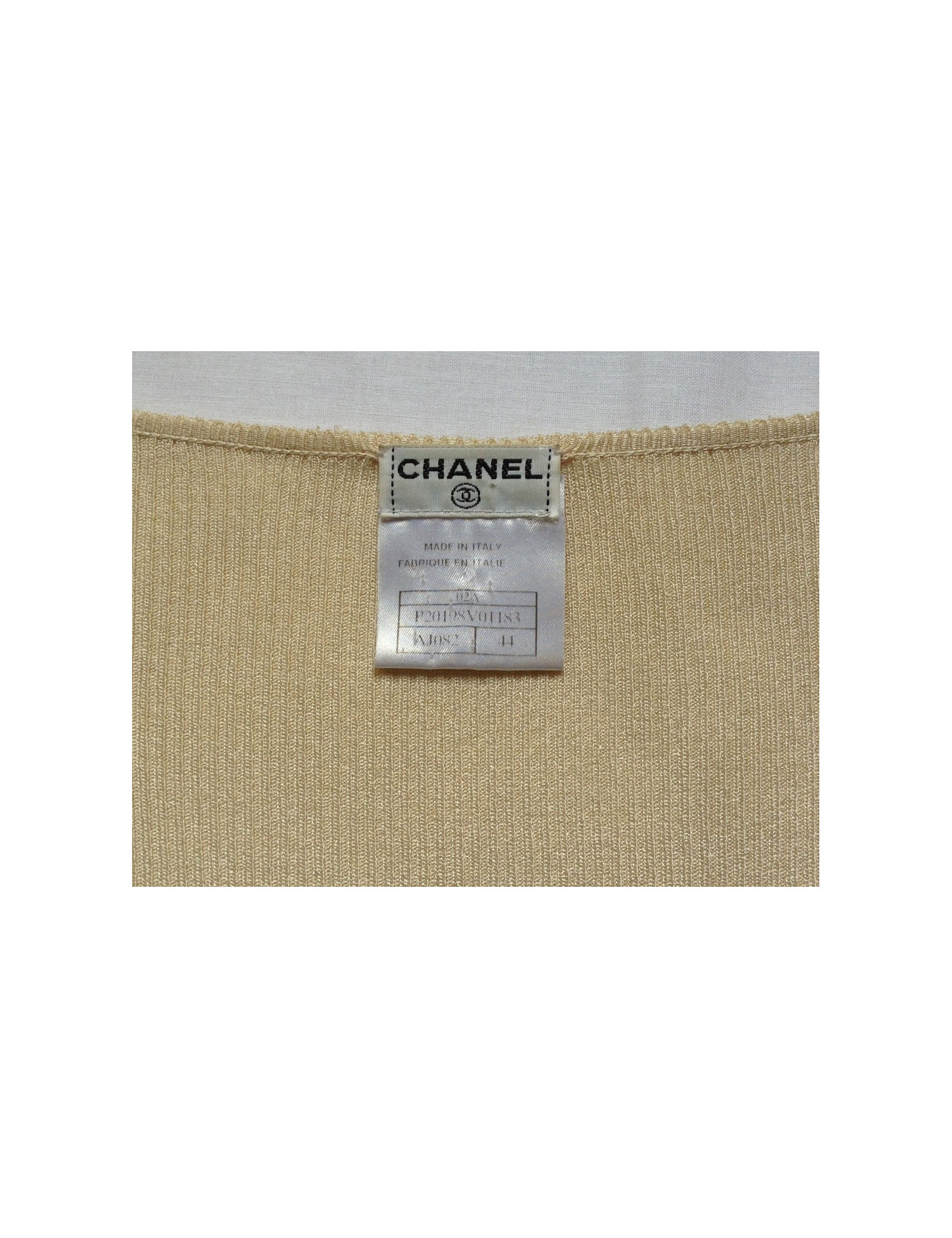 Gilet CHANEL beige CC strass T44