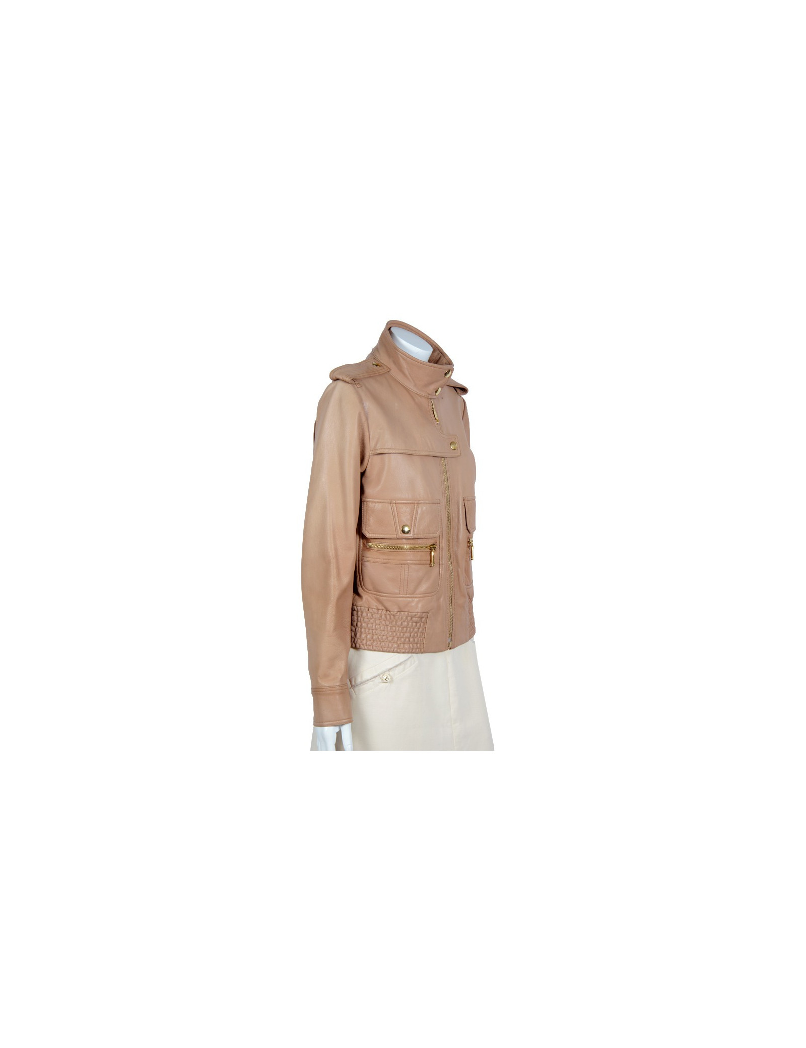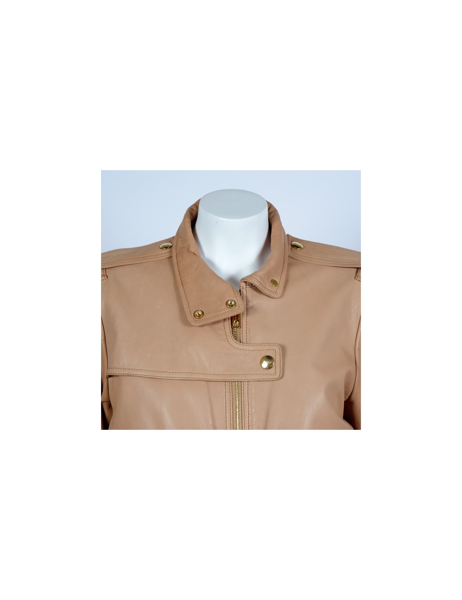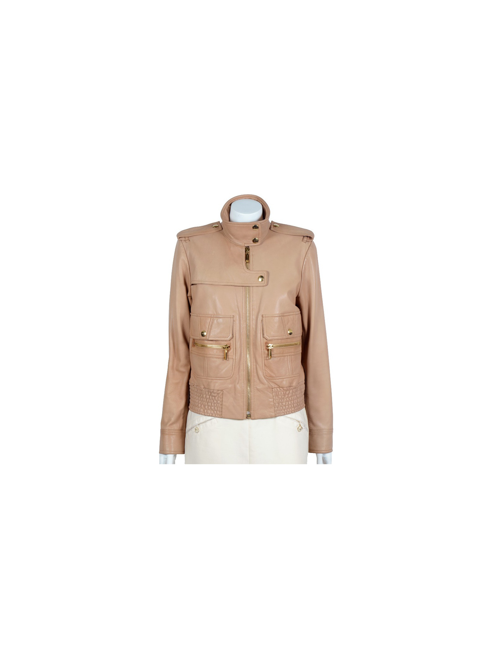 Ravissant blouson Bui par Barbari Bui T40 en cuir de chèvre beige, boutons et fermeture éclair en métal doré.