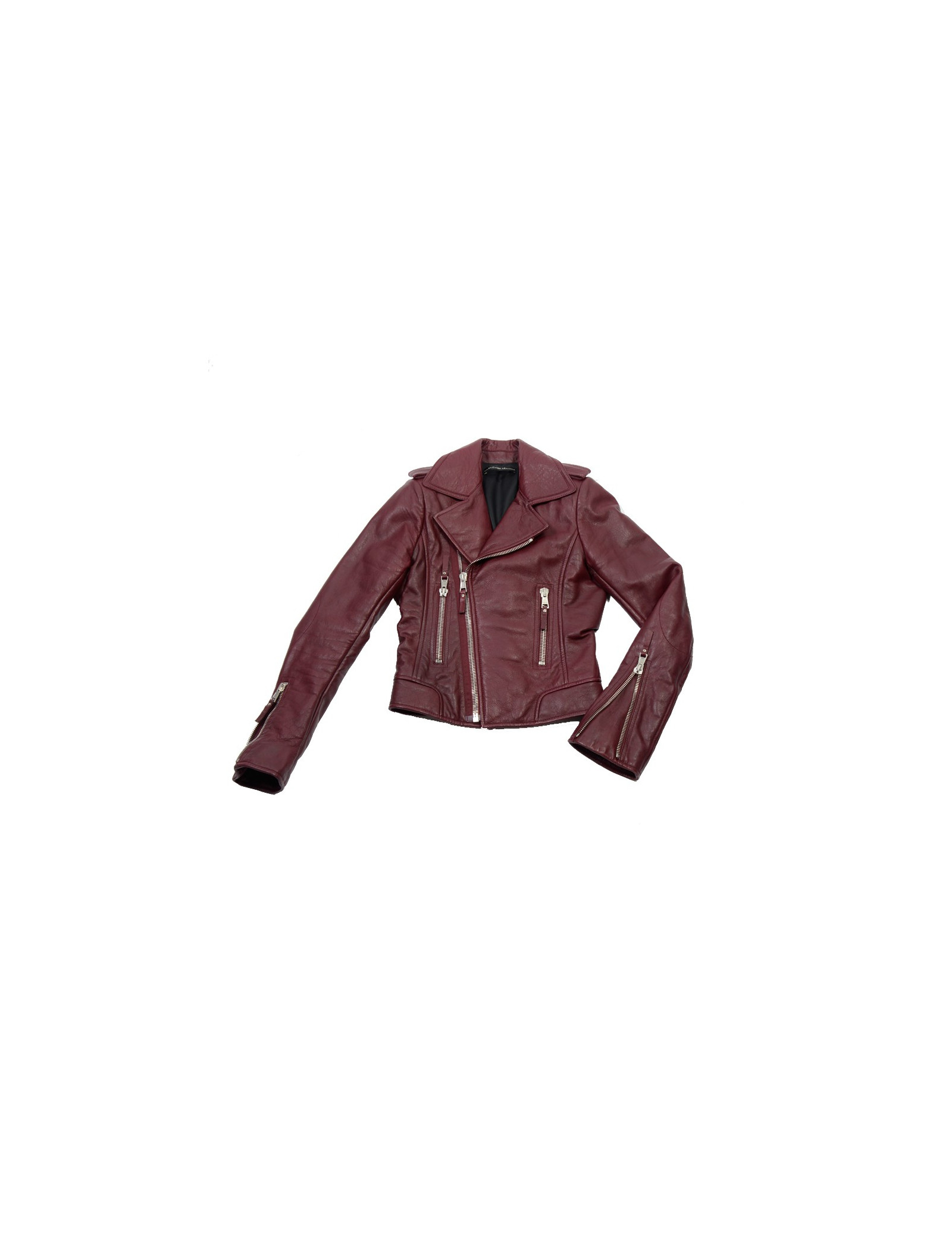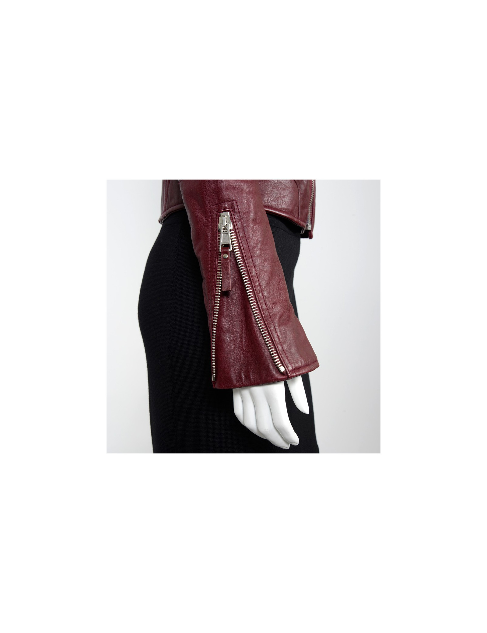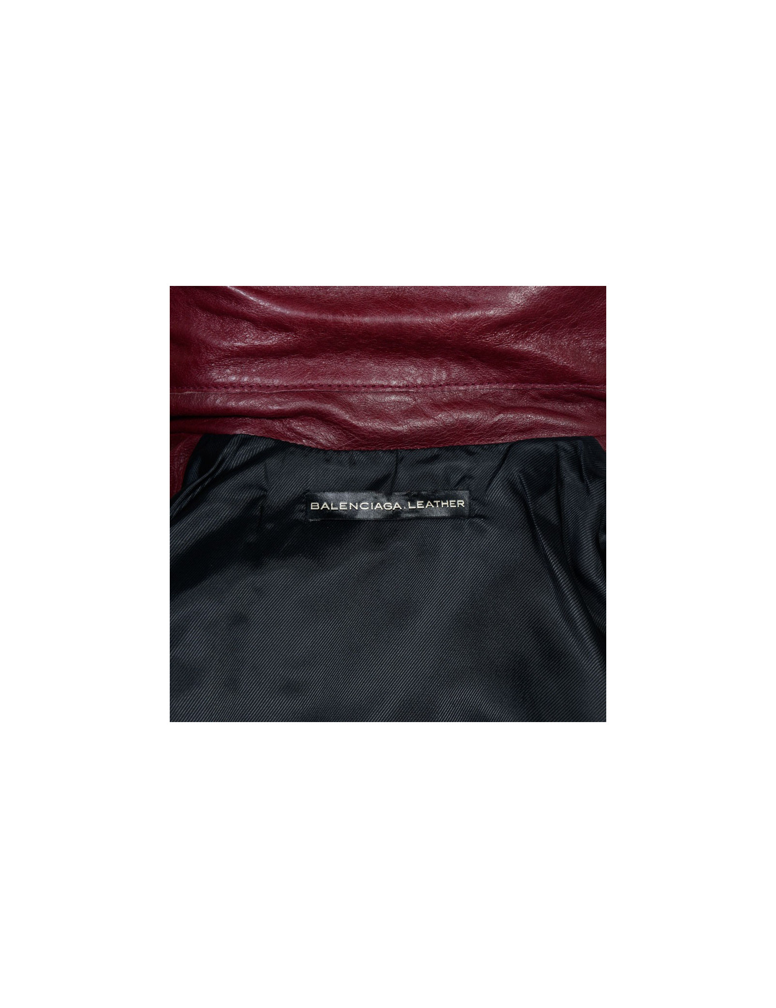 Must have! Perfecto Balenciaga en cuir d'agneau bordeaux. Fermeture zippée au centre. Une poche zippée de chaque côté. Elle peut se porter ouverte pour un effet décontracté ou fermé. En très bon état.