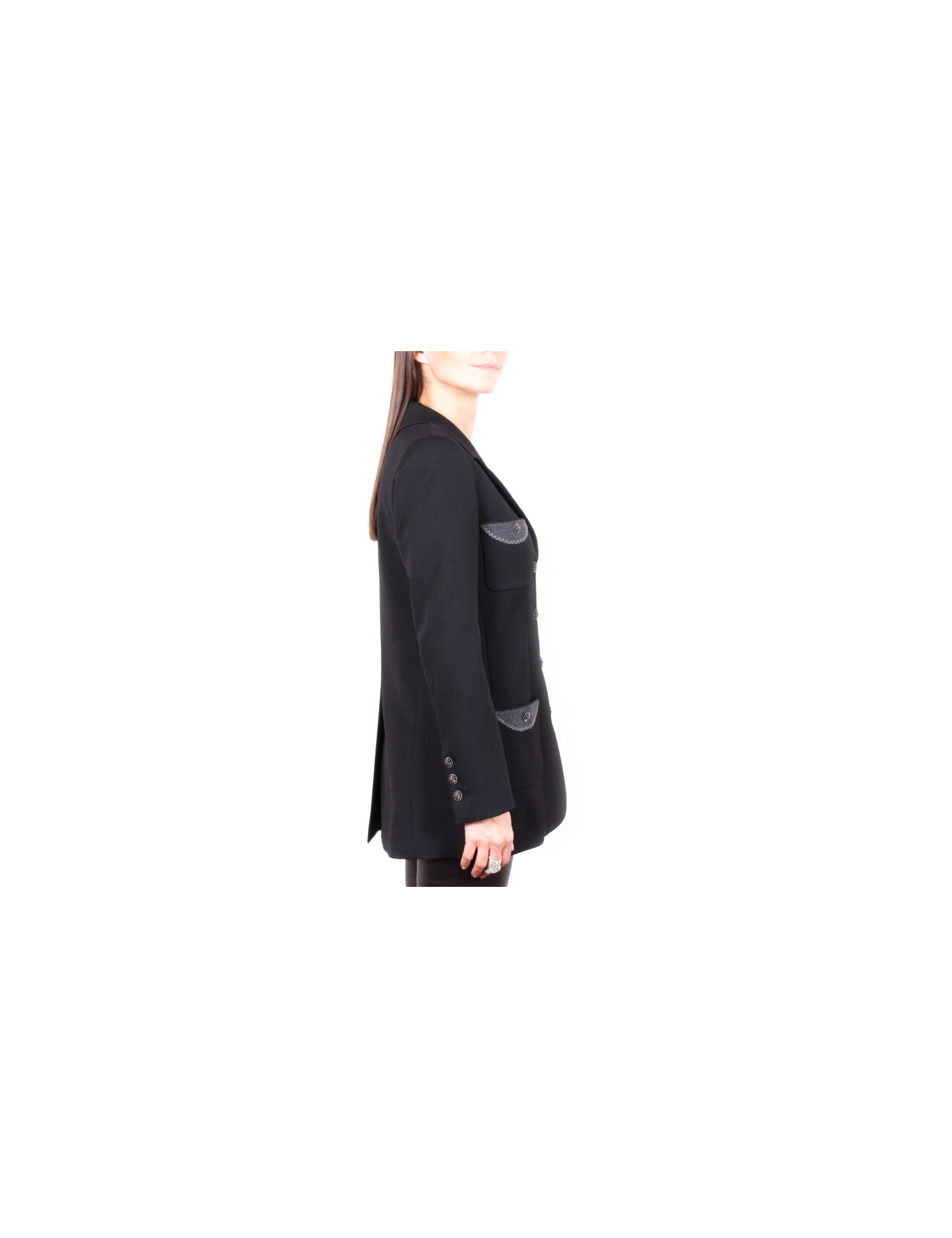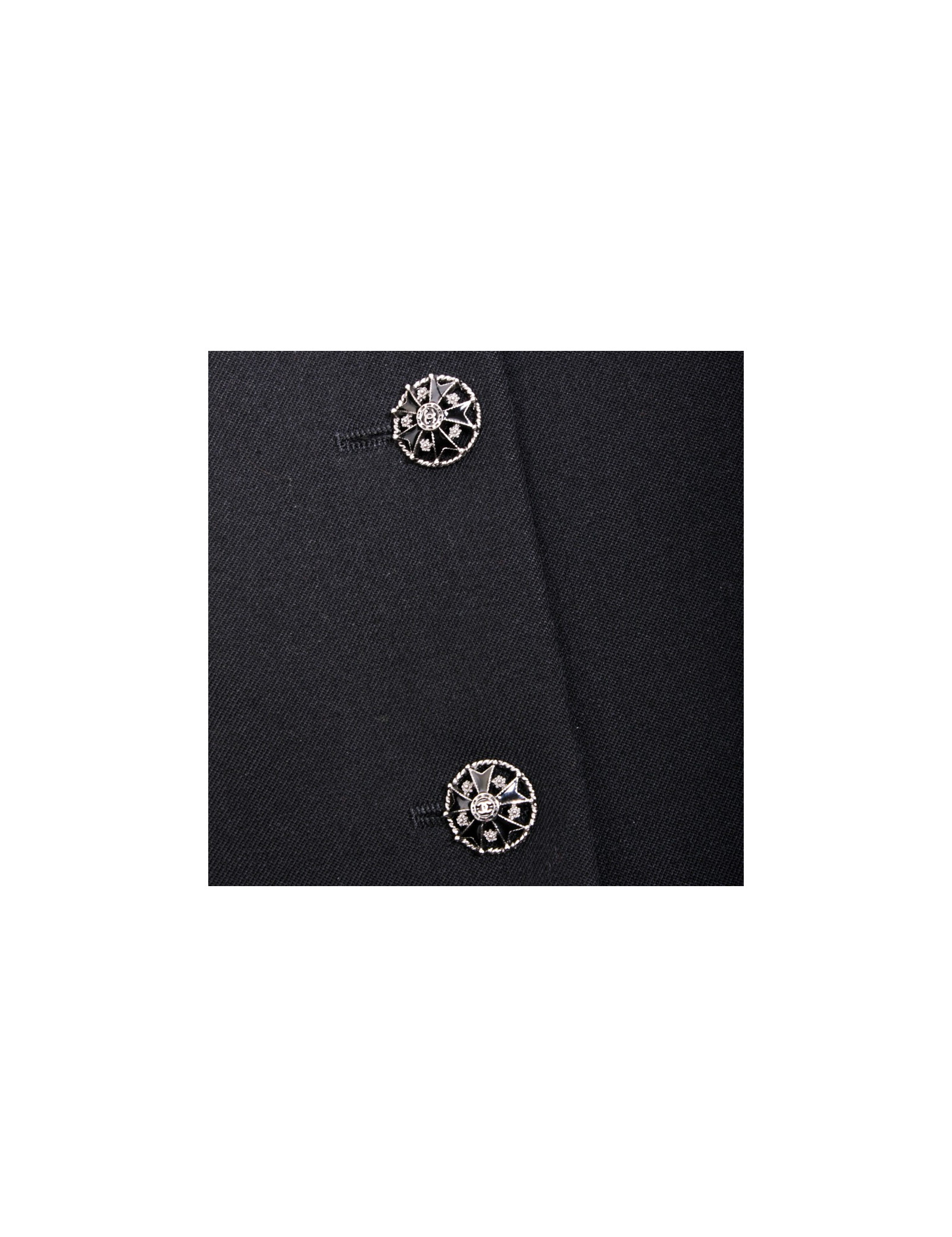 Elle se ferme à l'aide de 4 boutons en métal argenté et émaillés noirs siglés CC.