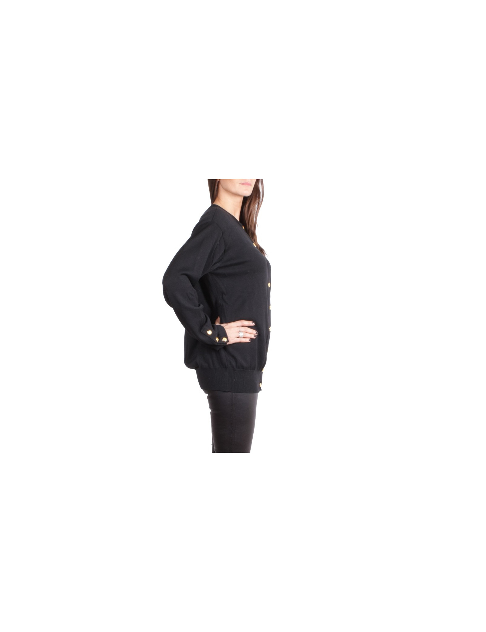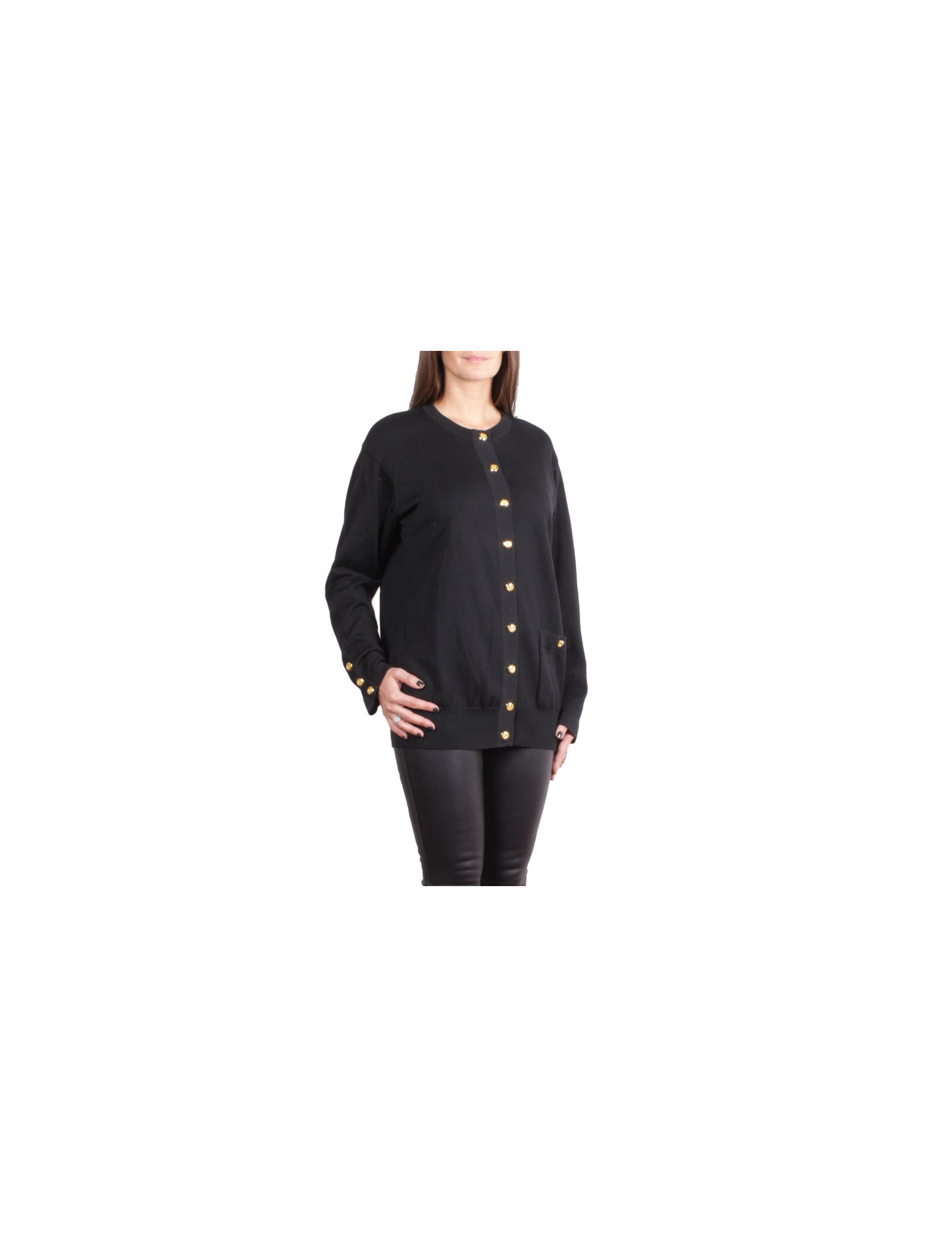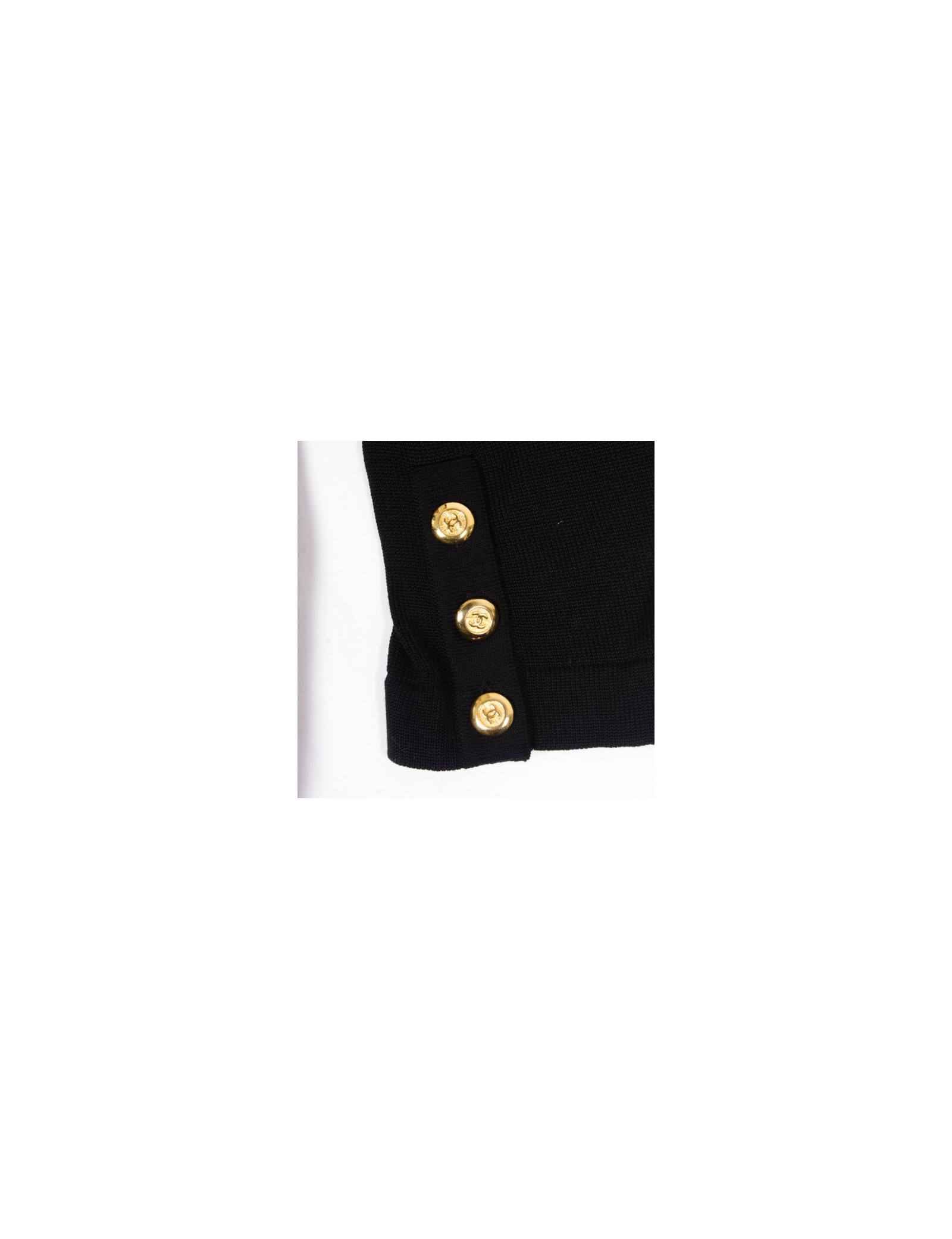 Joli cardigan CHANEL vintage en coton noir, il se ferme à l'aide de superbes boutons dorés siglés CC.