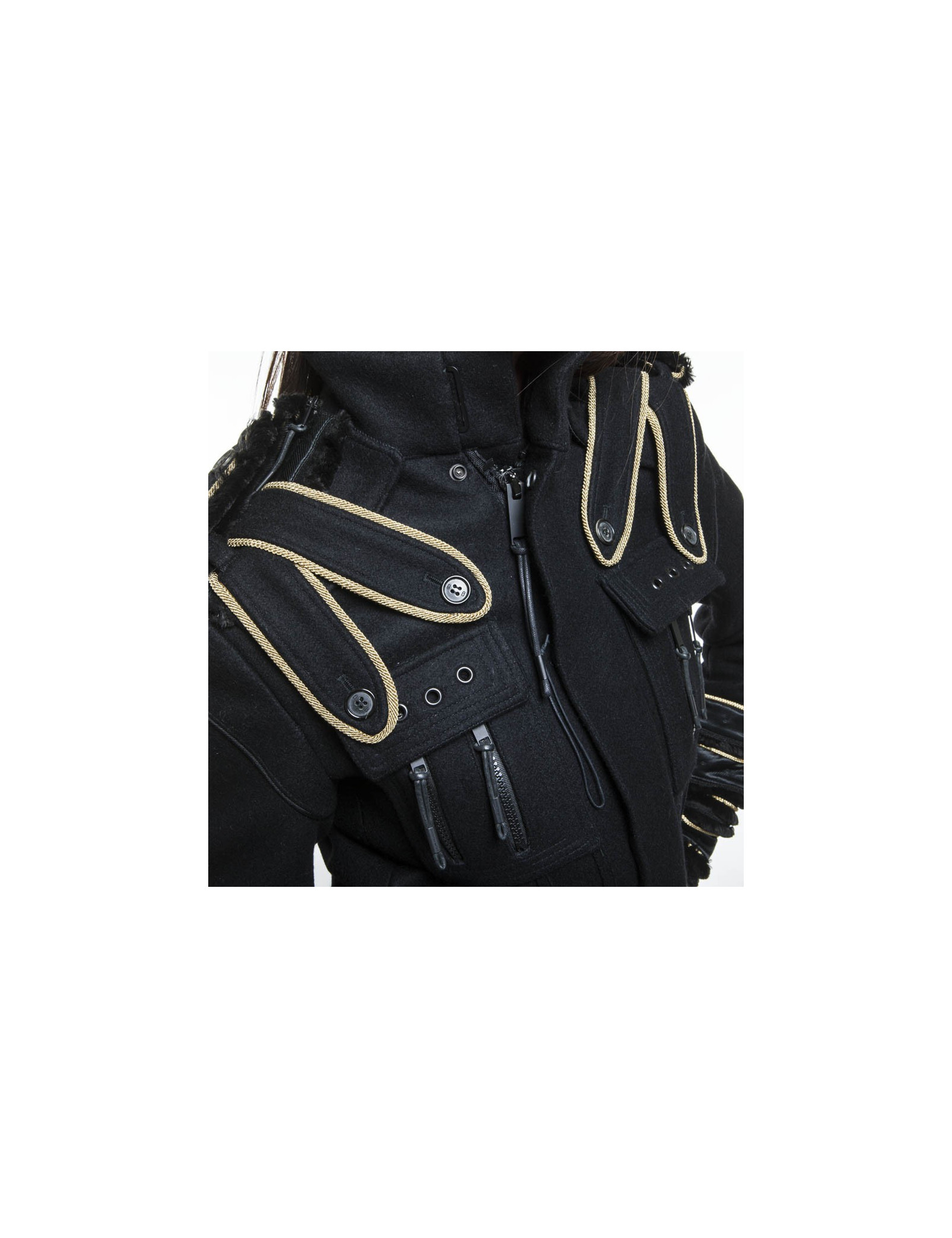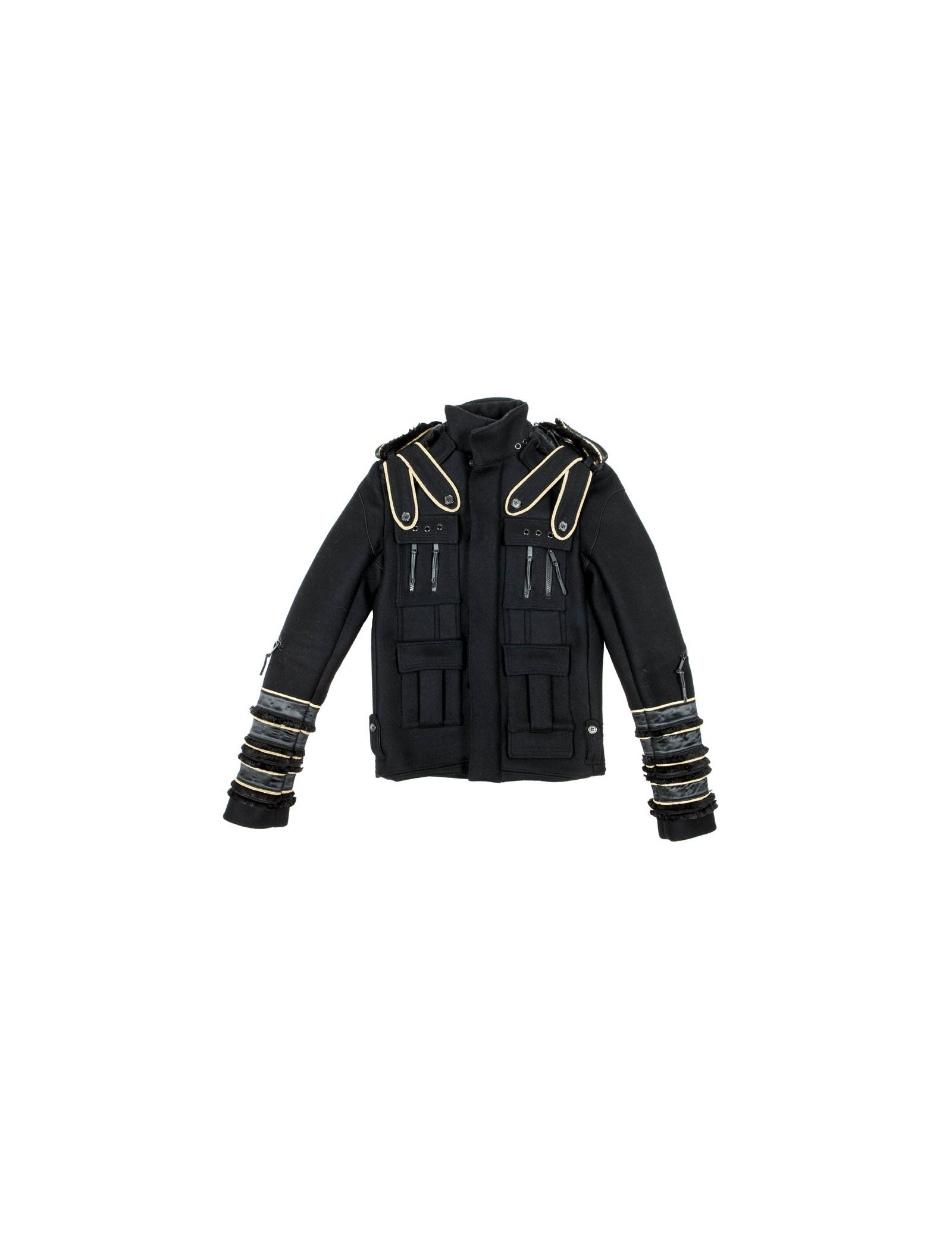 Exceptionnelle veste Dior homme/femme par Hedi Slimane en feutrine noire avec de superbes galons de satin noir et des liserets noirs et or au bord des manches et sur les épaules.