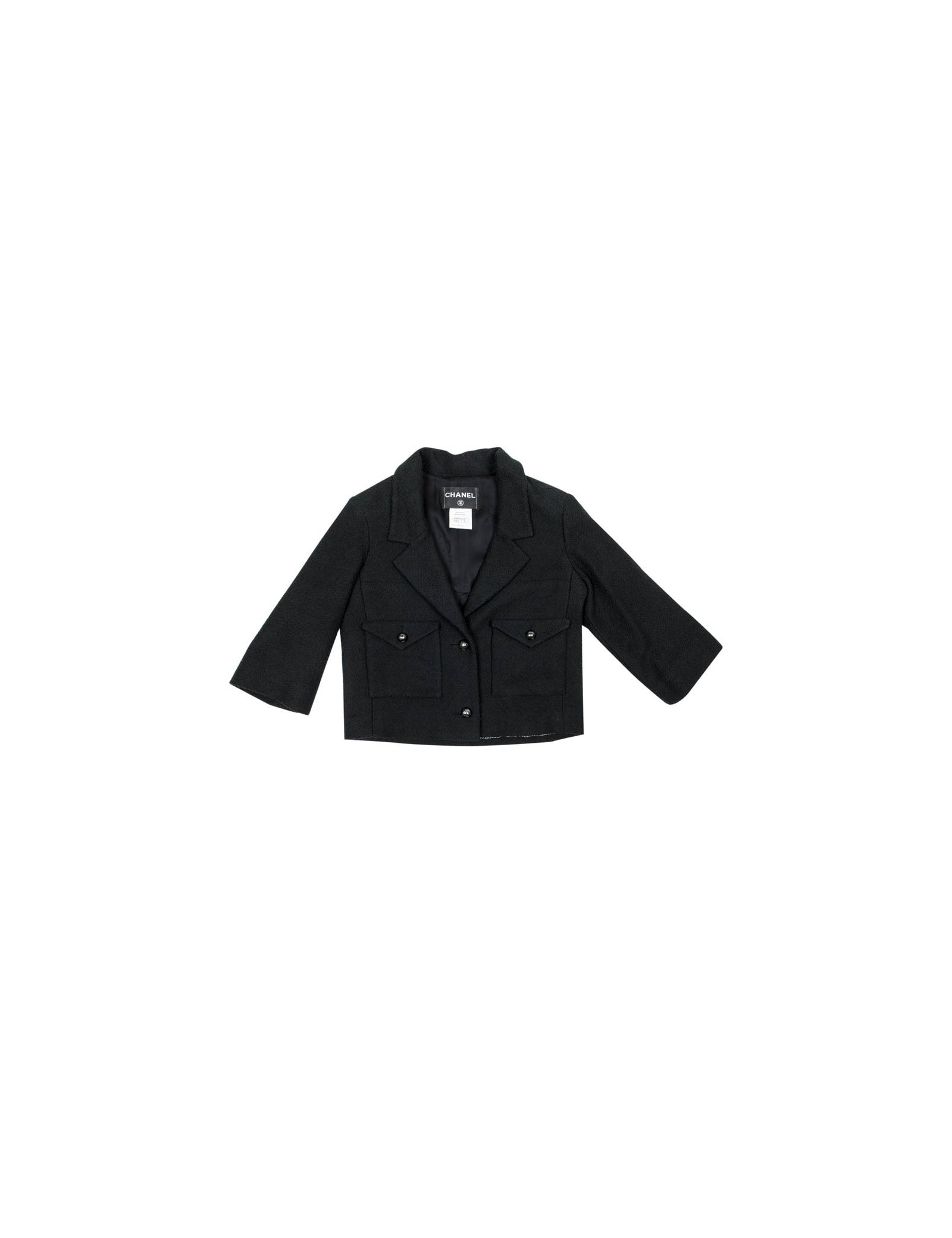 Jolie veste courte Chanel taille 36 FR, noire. En parfait état et indispensable dans son dressing. Manches mi-longues et doublure en soie noire monogramme.