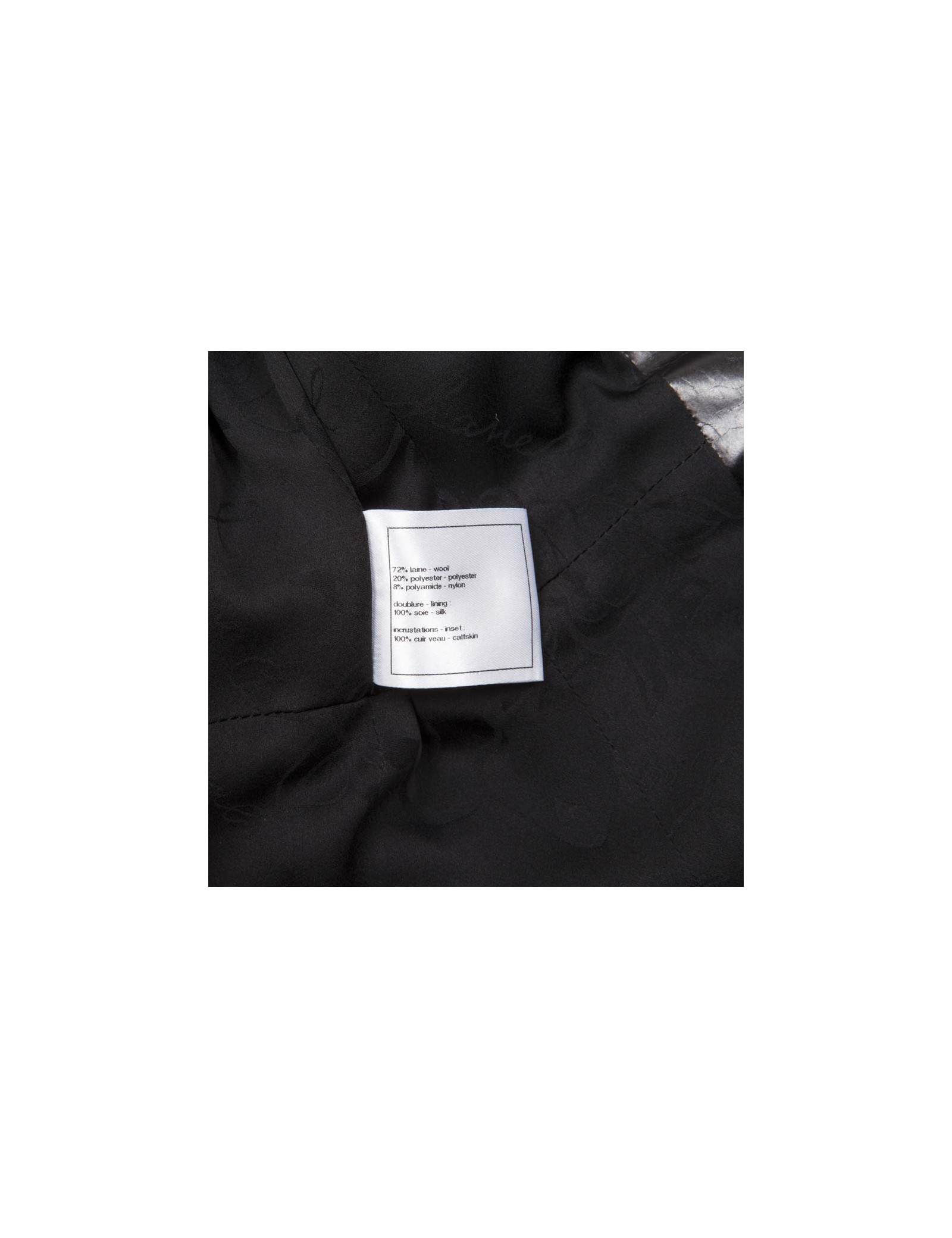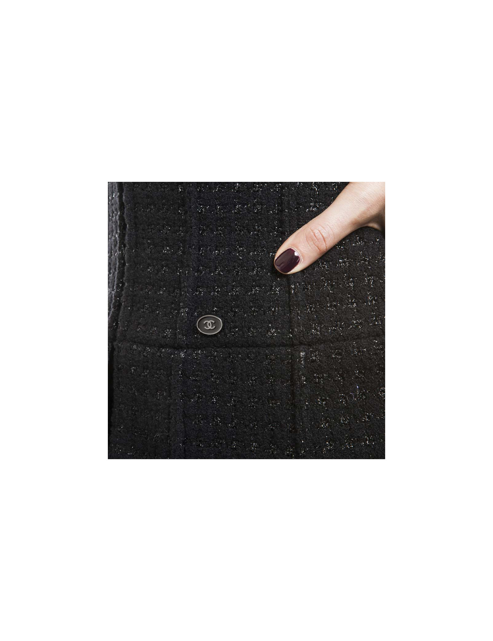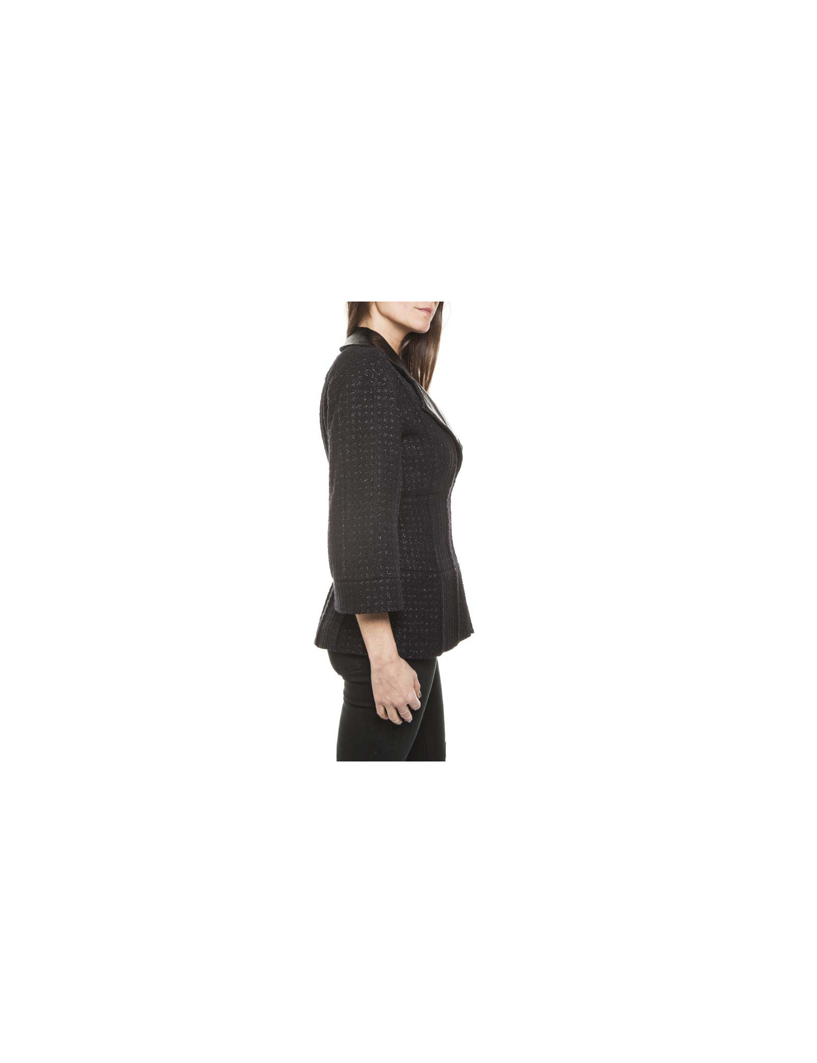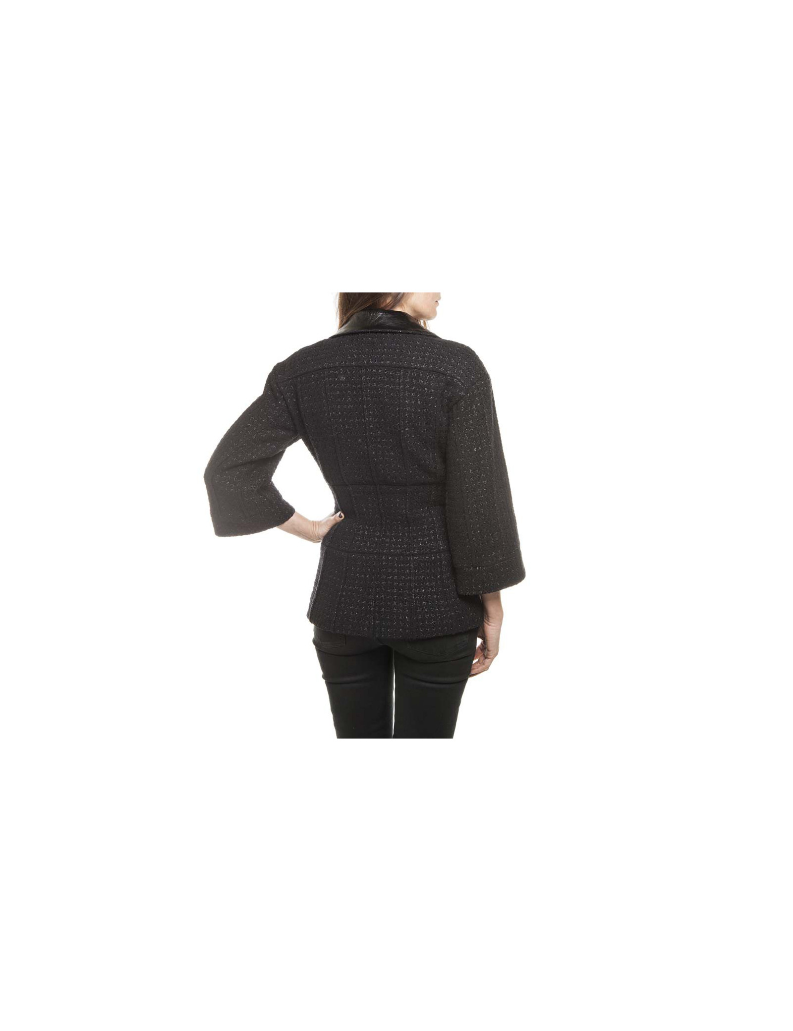 Jolie veste Chanel en tweed noir et fils brillants, avec un col en polyester.