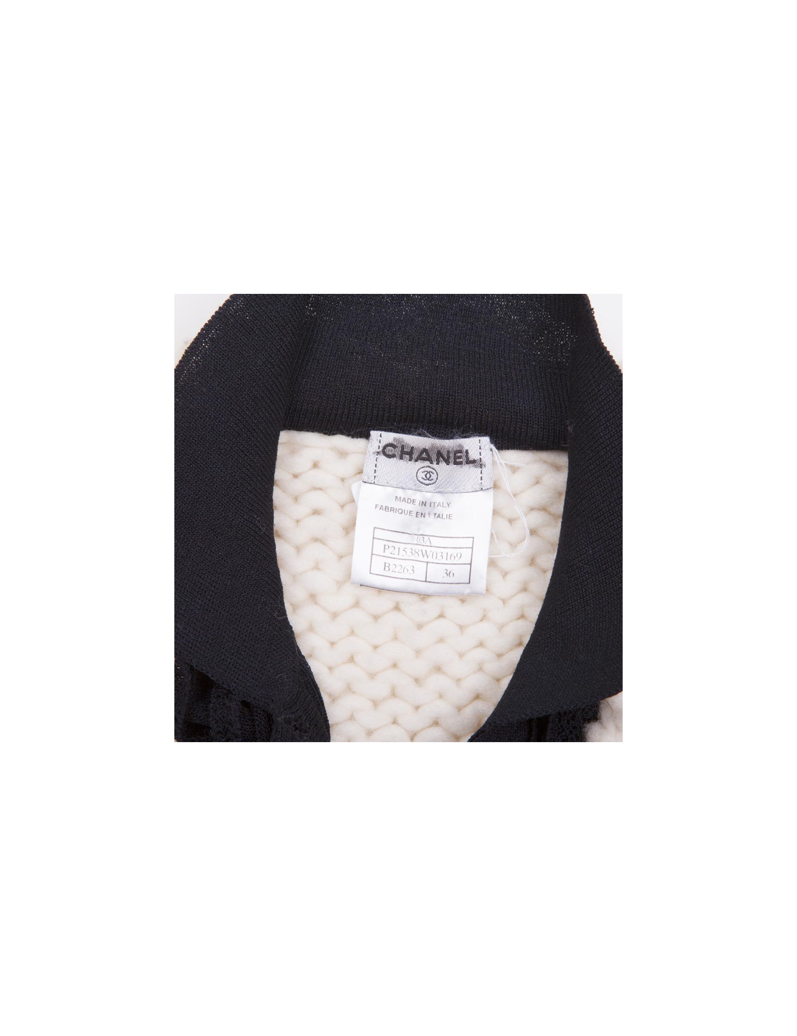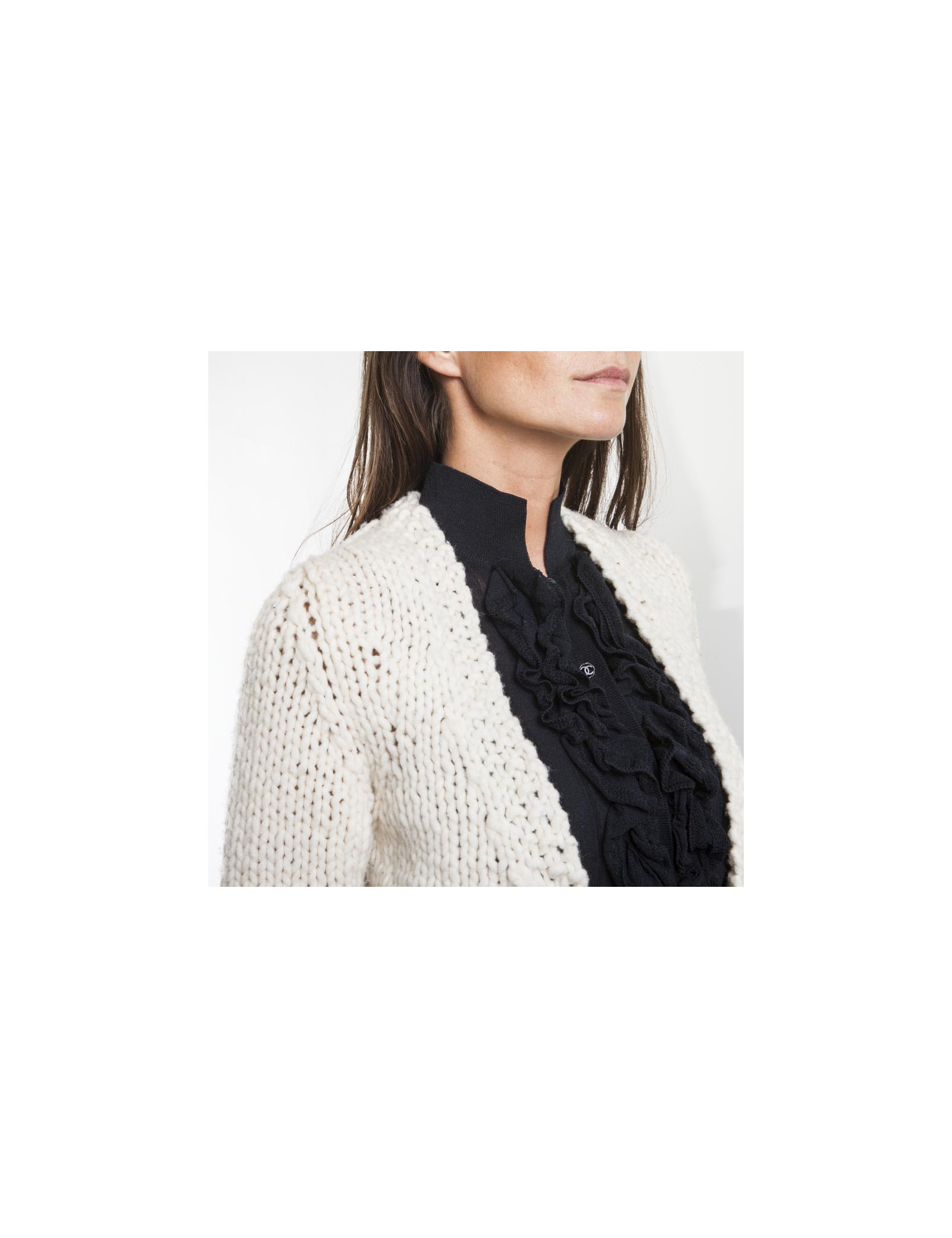 Gilet T 36 CHANEL en laine écrue et plastron noir