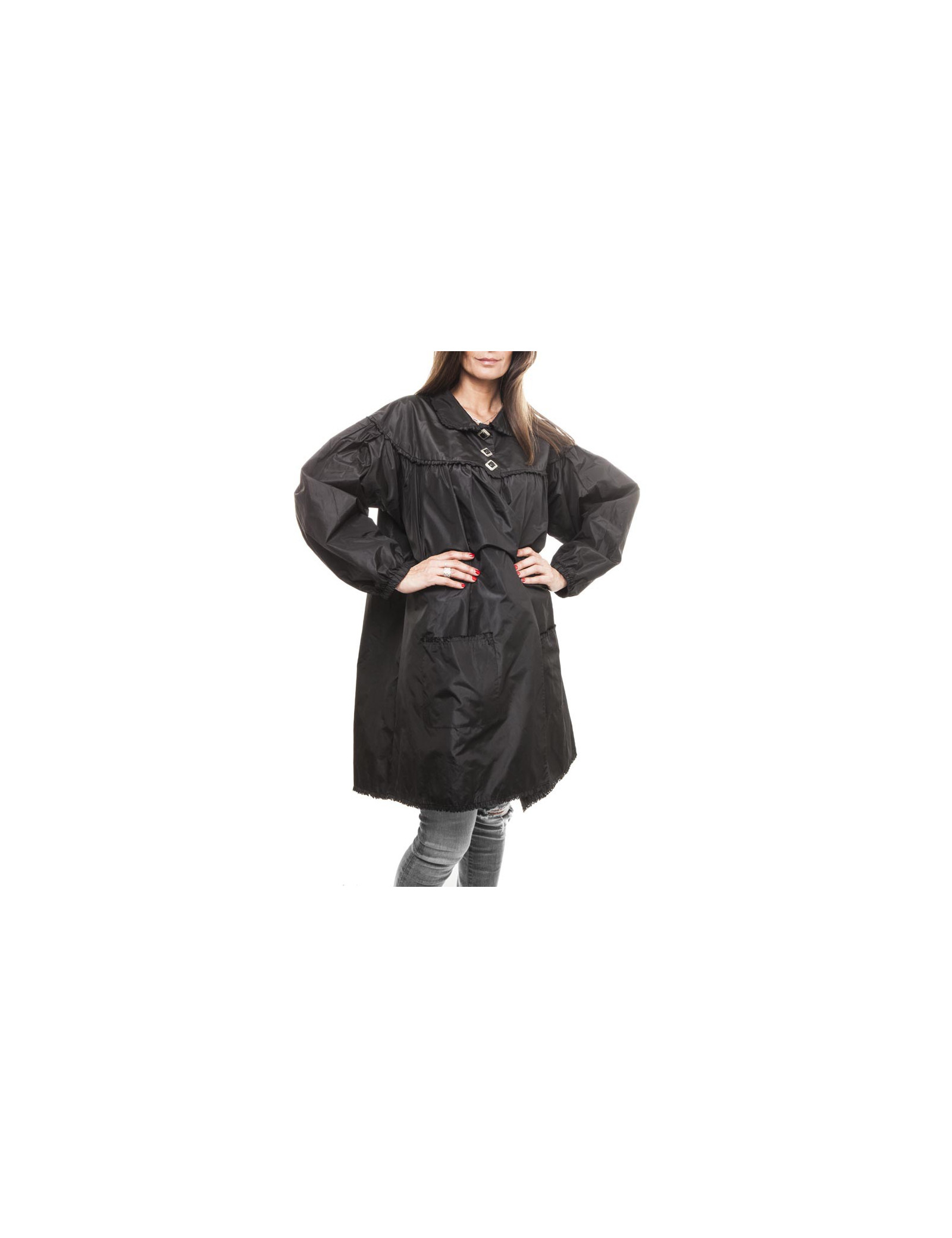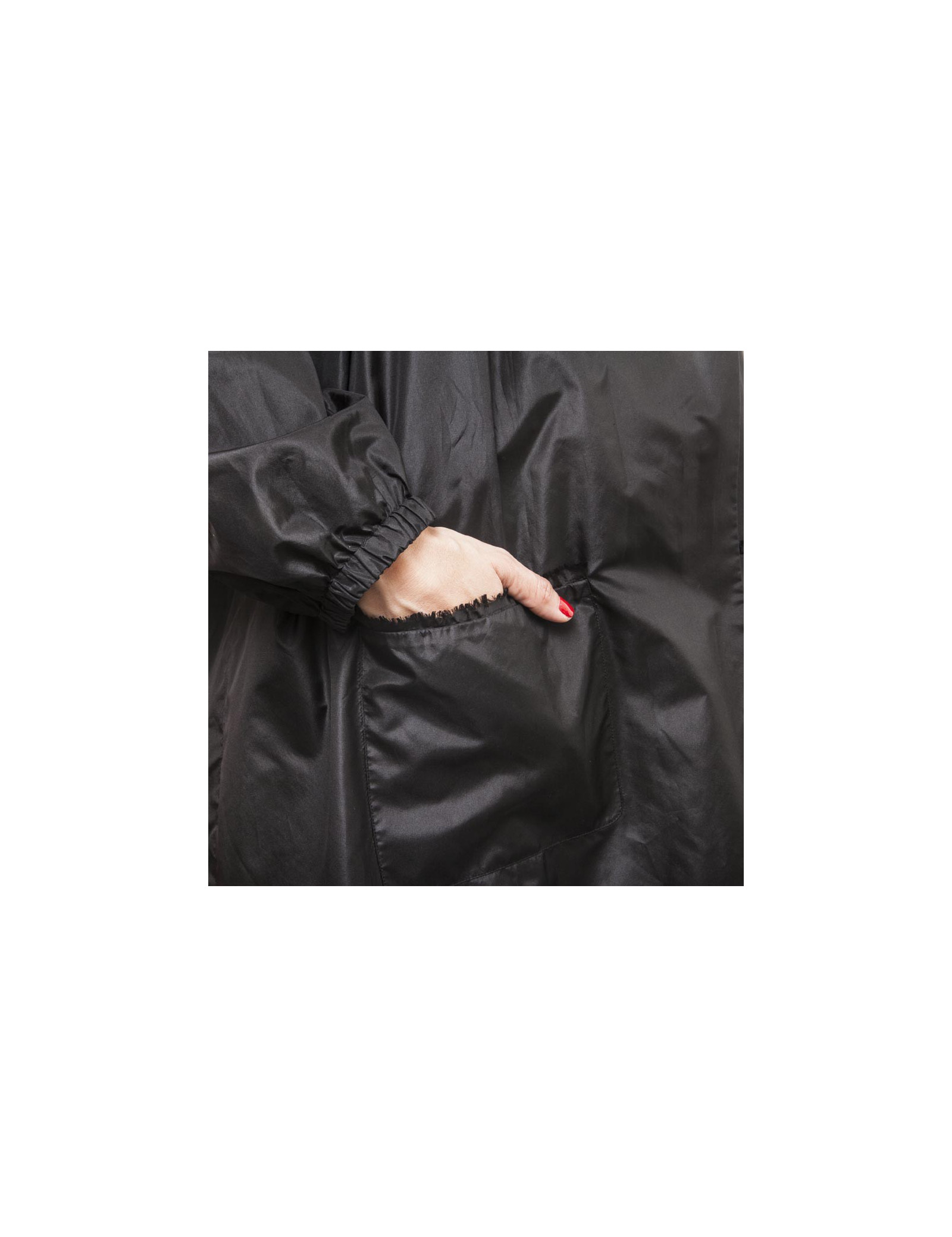 Dimensions : largeur épaules (coutures) 38/50 cm, poitrine 82 cm, hauteur 91 cm, longueur des manches 53.5 cm (couture), tour de poignet 23 cm (élastique), tour de bras :44 cm, ampleur du bas 72 cm